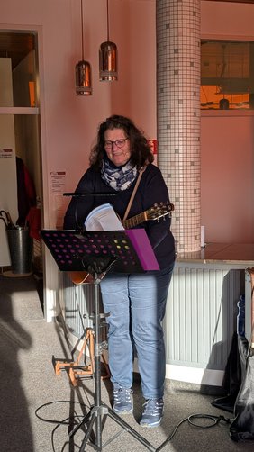 Ursprünglich war der Konzertnachmittag mit der Sängerin und Gitarristin Mona Lichtenhof als Semesterabschlussveranstaltung am 19.12.2025 geplant, er musste dann aber wegen Erkrankung der Künstlerin auf den 23.01.2026 verlegt werden, doch auch zum neuen Termin konnte die ausgezeichnete Chansonsängerin vor ausverkauftem Haus auftreten.
