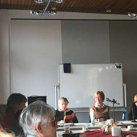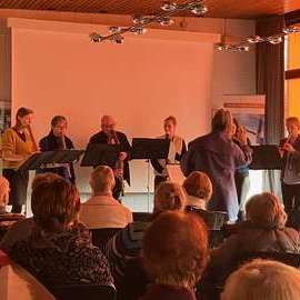 Ursprünglich war der Konzertnachmittag mit der Sängerin und Gitarristin Mona Lichtenhof als Semesterabschlussveranstaltung am 19.12.2025 geplant, er musste dann aber wegen Erkrankung der Künstlerin auf den 23.01.2026 verlegt werden, doch auch zum neuen Termin konnte die ausgezeichnete Chansonsängerin vor ausverkauftem Haus auftreten.