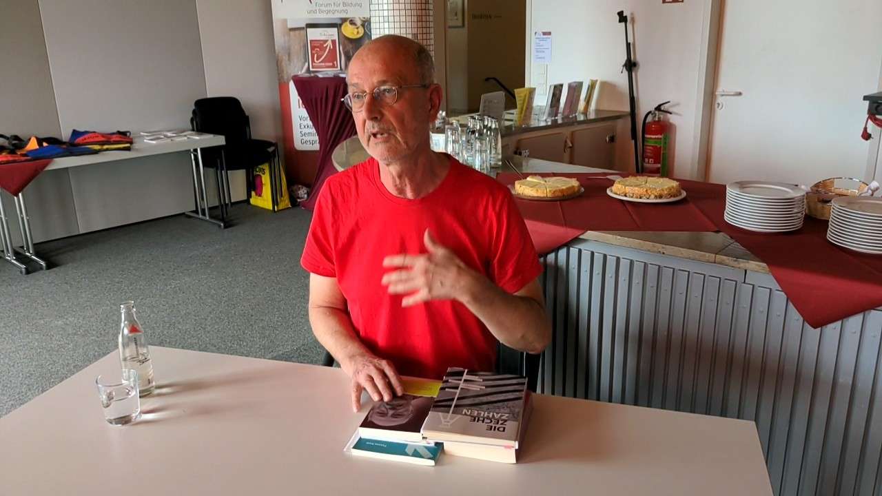 Thomas Kade las Auszüge aus seiner Geschichte „Das Rot der frühen Jahre“, einer Liebeserklärung an seine Heimatstadt Herne, die auch in uns als Zuhörer*innen Gedanken an unsere Jugendzeit aufleben ließ.