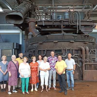 Über die Regenbogenbrücke, also über die B 1, ging es dann zu TU Dortmund. Bei einem gemütlichen Mittagessen in der Außengastronomie der TU führte Herr Dr. Lauschke in die Geschichte der TU ein. Eine H-Bahnfahrt rundete das Programm ab.