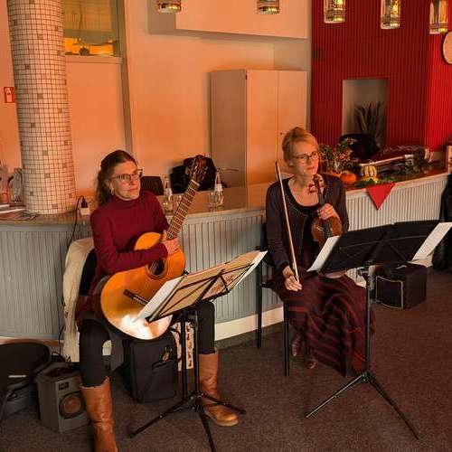Die filigrane und doch eindringliche Stimme der Geige und der strahlende Klang der Gitarre in einem beredt-nuancierten Zwiegespräch dieser beiden Königinnen der Saiteninstrumente nahmen die Zuhörerinnen und Zuhörer mit auf eine Reiser wunderschöner Klänge.