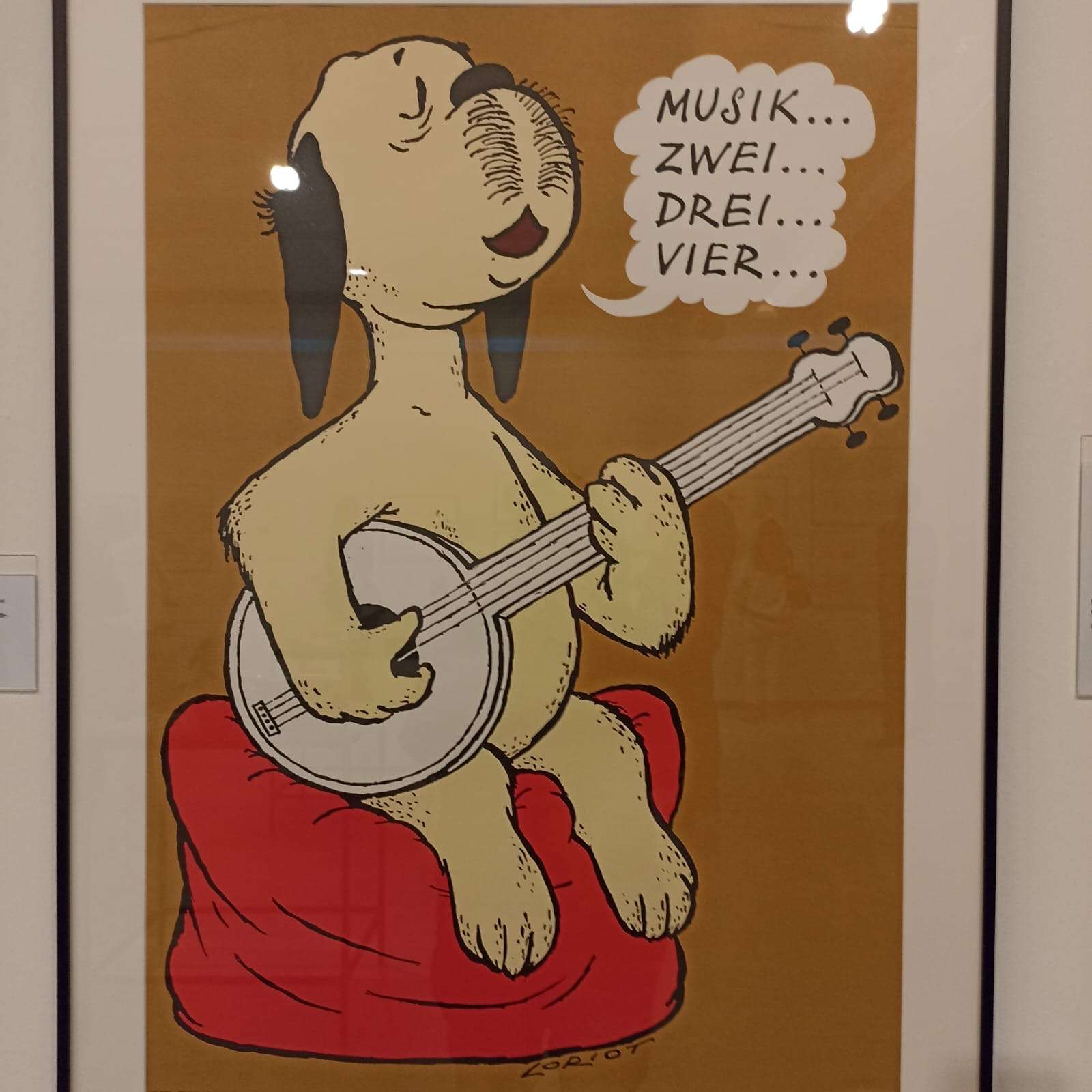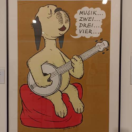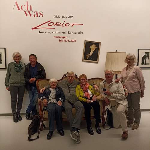 Als Dank für seine langjährige Mitarbeit,- er war bei weitem das dienstälteste Mitglied im Vorstand,- hatten sich die Vorstandsmitglieder überlegt, für Hartmut Schulz einen Überraschungsausflug zu organisieren. Da er immer wieder auch durch seinen unverwechselbaren Humor unsere Sitzungen und Arbeitseinsätze bereichert hat, passte es gut, dass im Moment in der Ludwiggalerie Schloss Oberhausen die Ausstellung Loriot – Künstler, Kritiker und Karikaturist stattfindet. Am Himmelfahrtstag, dem 29.05.25, trafen wir, Hartmut Schulz und sechs Mitglieder des jetzigen Vorstands, uns vor der ParkAkademie und fuhren gemeinsam nach Oberhausen, wo uns Frau Dr. Karow kompetent und unterhaltsam durch die Ausstellung führte, die auf drei Stockwerken den gesamten Wirkungsbereich dieses begnadeten Künstlers und Komikers zeigt. Nach der Führung hatten wir noch Zeit für eigene Erkundungen der Exponate, natürlich haben wir uns auch auf dem Originalsofa der Loriotsendungen gemeinsam fotografieren lassen. Die ursprünglich grüne Farbe des Polsters ist inzwischen in ein schwaches Gelb übergegangen.