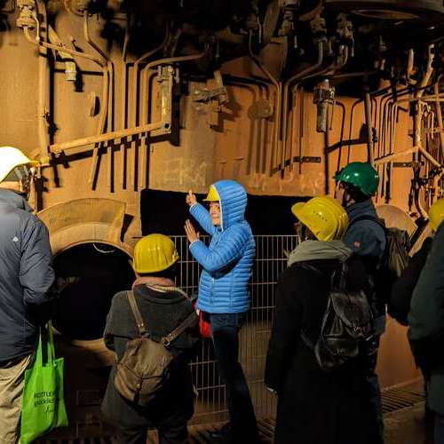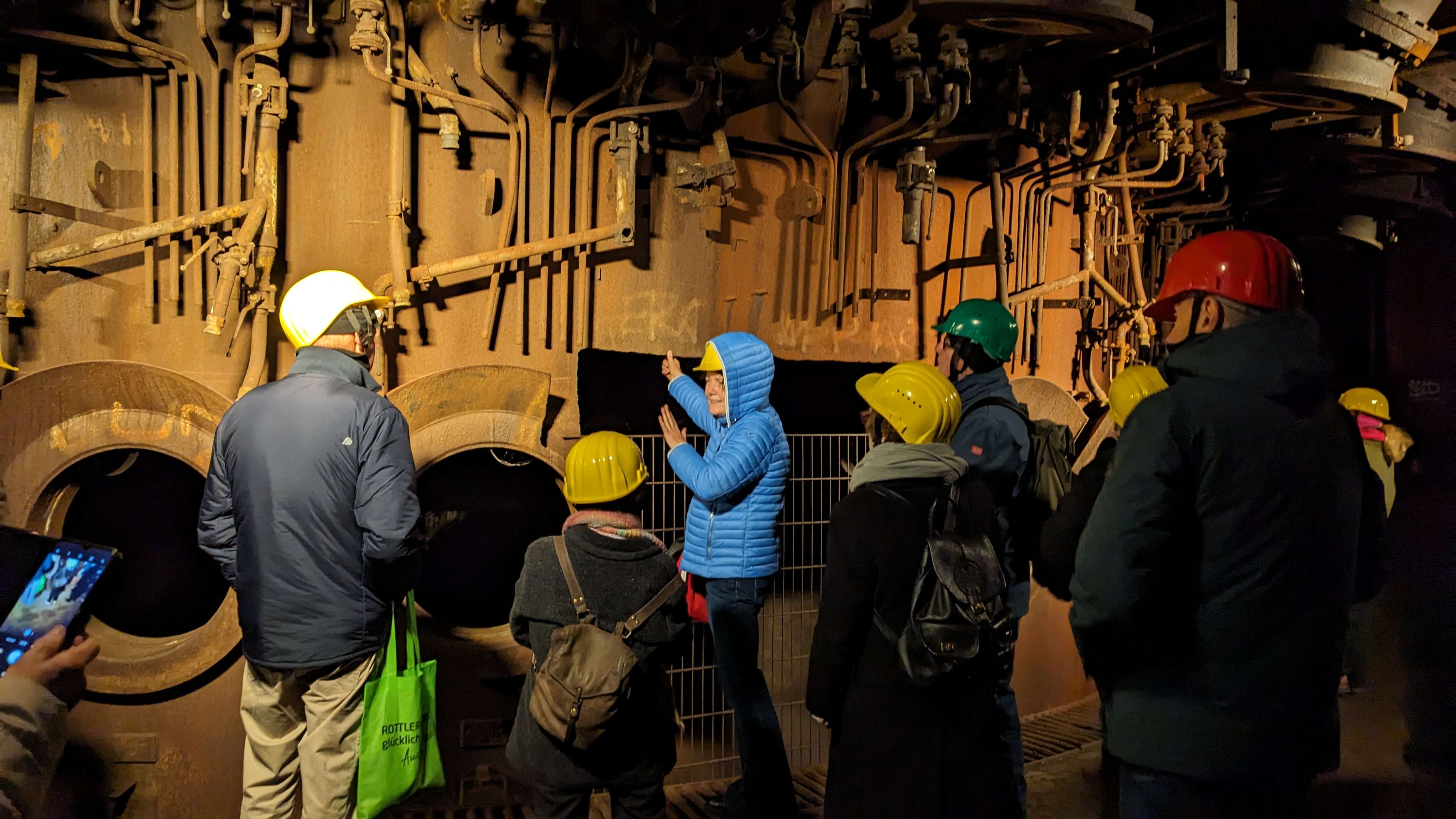 Selbst die Dozenten, die in technischen Bereichen gearbeitet haben, waren sehr angetan von diesem einmaligen Erlebnis. Eine weitere Faszination bildete der rot erleuchtete Hochofen. Auch hier wurde von Frau Regener äußert sachkundig und lebendig über die Stahlerzeugung berichtet.